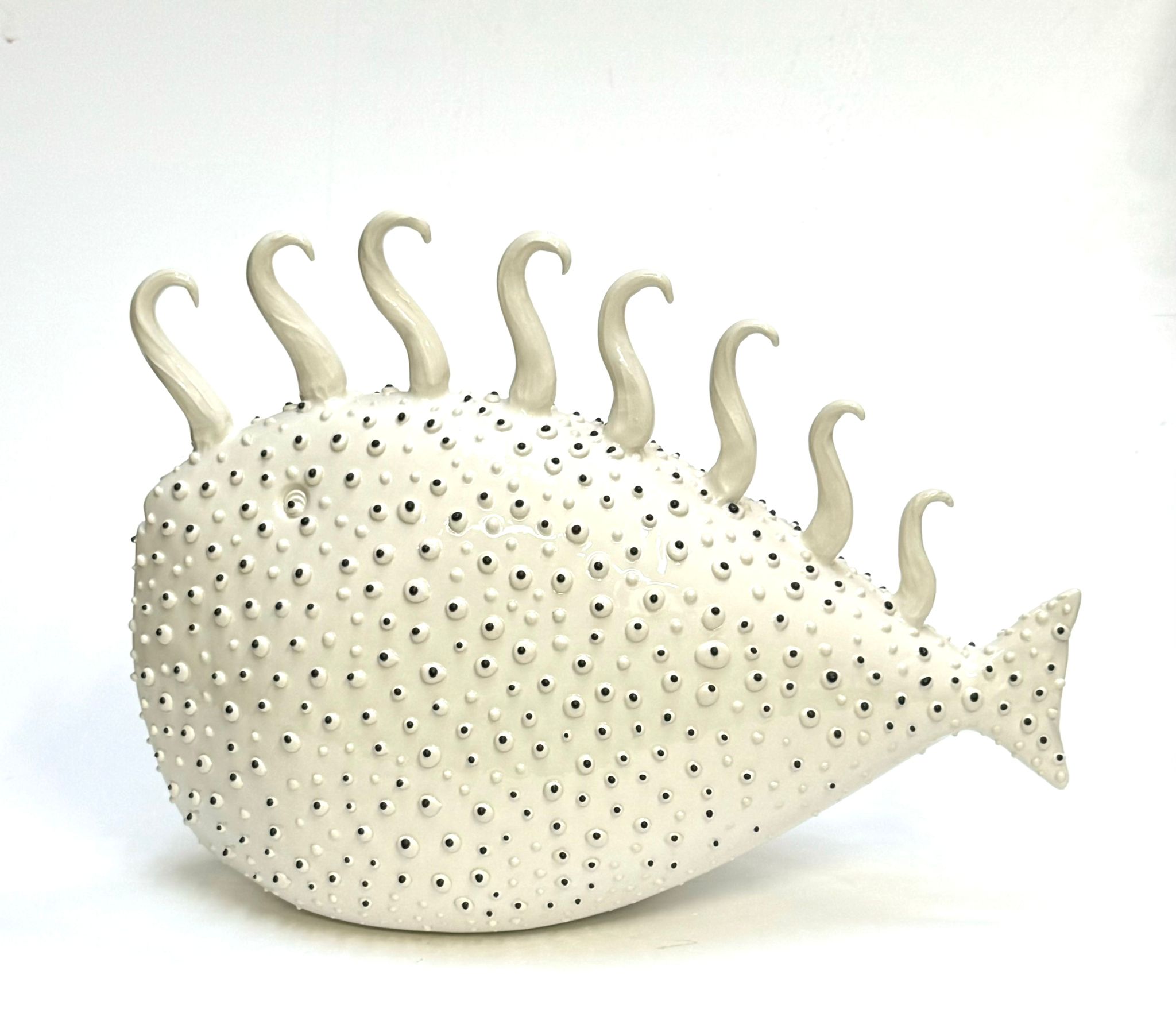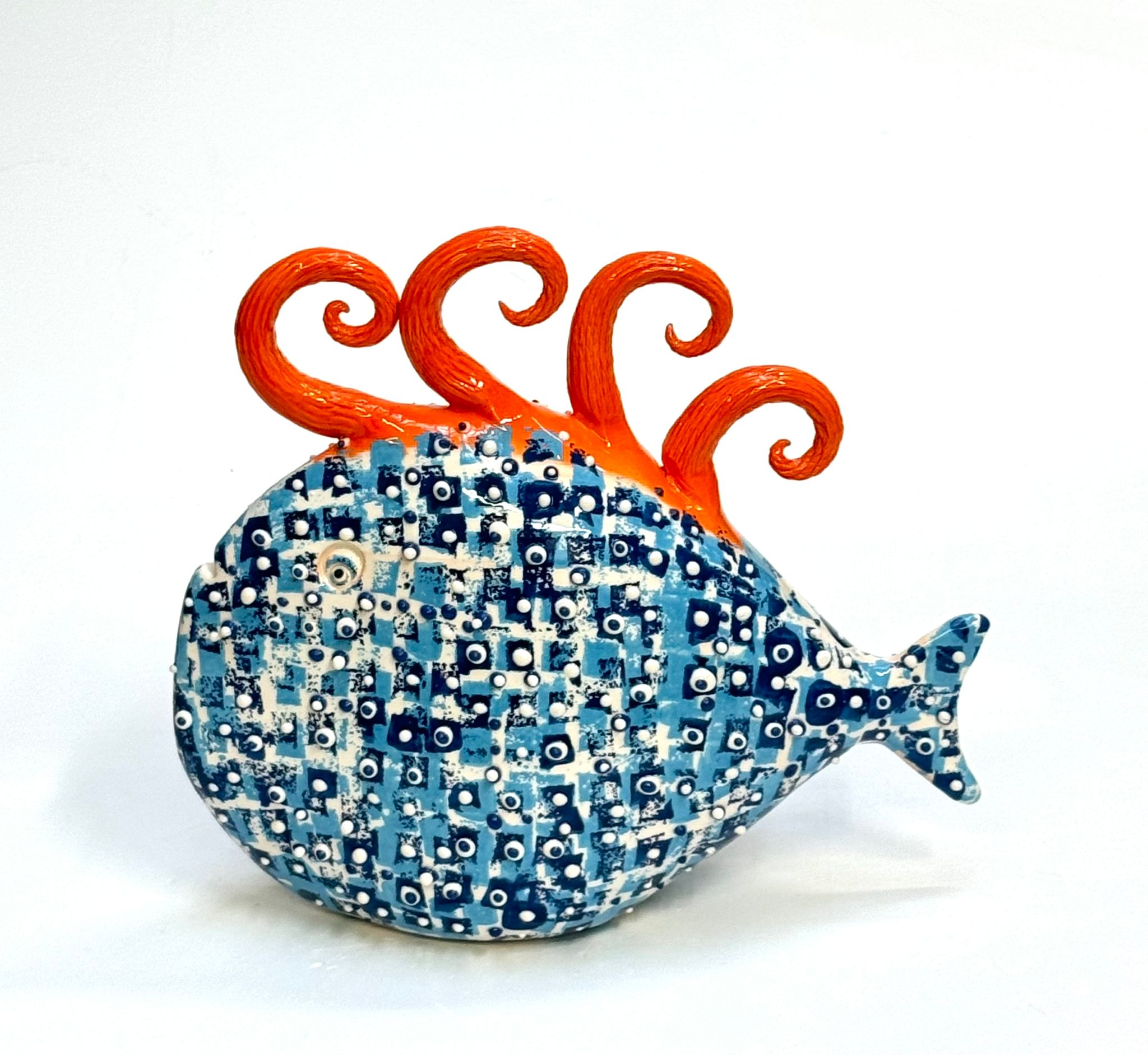Decorative ceramic fish. Please note that the photos are for illustrative purposes only. When ordering, please request a photo of the fish we have in stock. They are handmade, and no two fish will ever be the same as those shown on the website. Send us a message and we’ll show you the ones currently available. Prices range from €250 to €390.